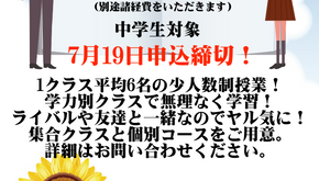 みなさま、こんにちは。 第1回定期テストに向けて テスト対策特別講座 を実施いたします。 今回は、外部生を募集いたします。 外部生の定員は 南中・三中 5名 中1~中3 ☆あと1名です。 初中 5名 中1~中3 です。 定員に満たない場合は、塾生のみの実施の予定です。...